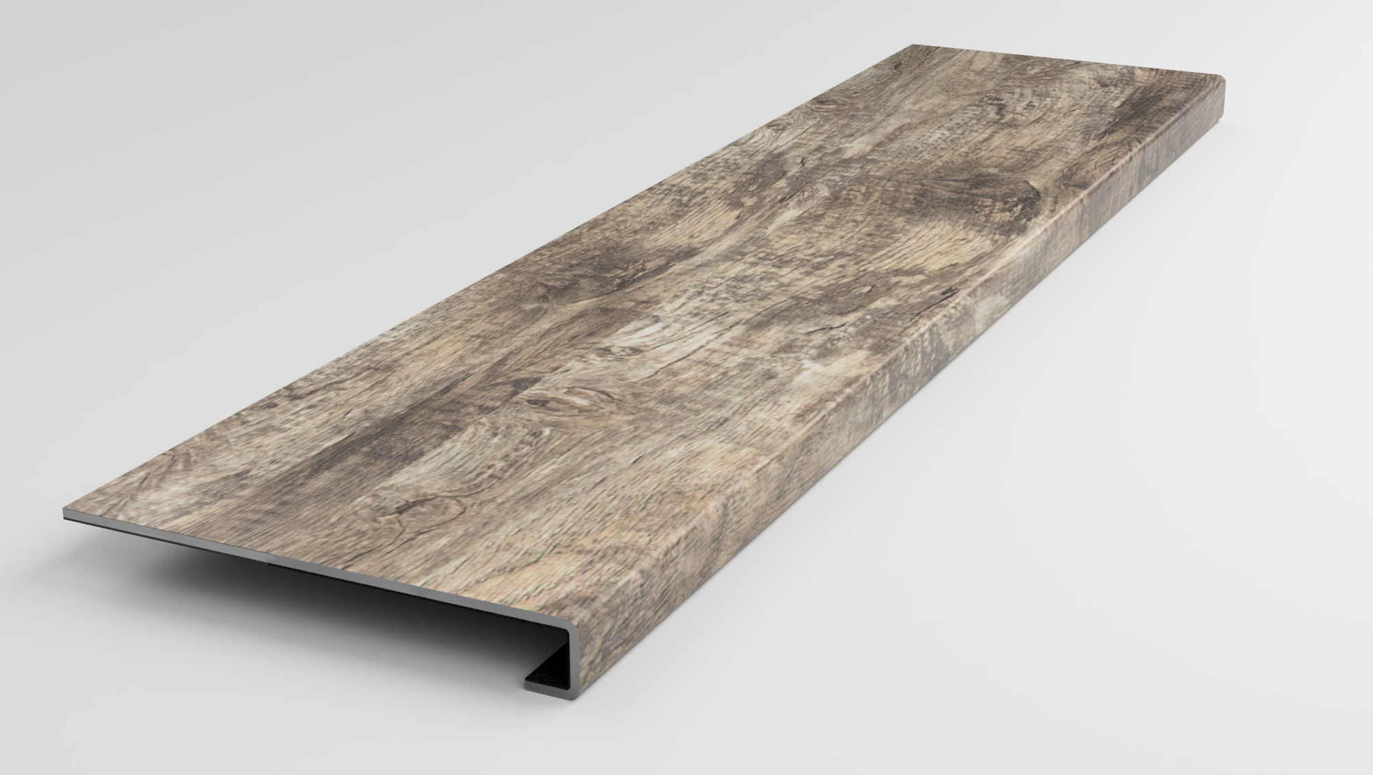 This variant is a Stair Nose made from a Mohawk Dodford 20 Click Canyon Oak Luxury Vinyl Plank. It is designed to be fitted and glued to the unfinished Stair Tread Nose. An addition Mohawk Dodford 20 Click Canyon Oak plank that you supply can be clicked in behind the nose to cover the remaining unfinished area.