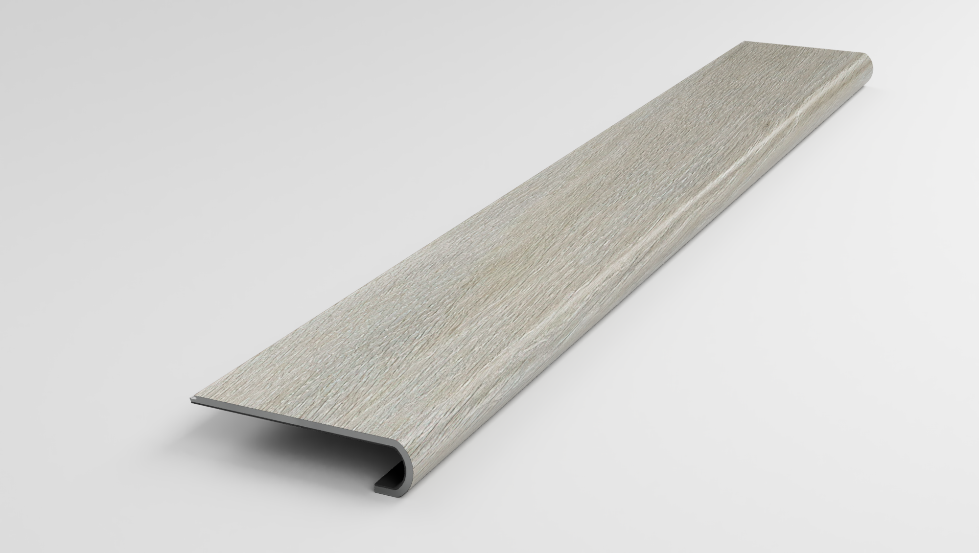 Made from Mohawk Explorers Cove Dazy Hazy flooring, this Stair Nose will now allow you to use your favorite flooring on your stairs. Previously, you would have to use other tread brands that were made of subpar materials and only looked similar to your flooring!  To make matters worse, a transition piece was often required at the top of the stairs posing both a hazard, and an eye sore.  Luxury Vinyl Treads has made it possible to use true Mohawk* Explorers Cove Dazy Hazy flooring to seamlessly transition from your flooring to your stairs.