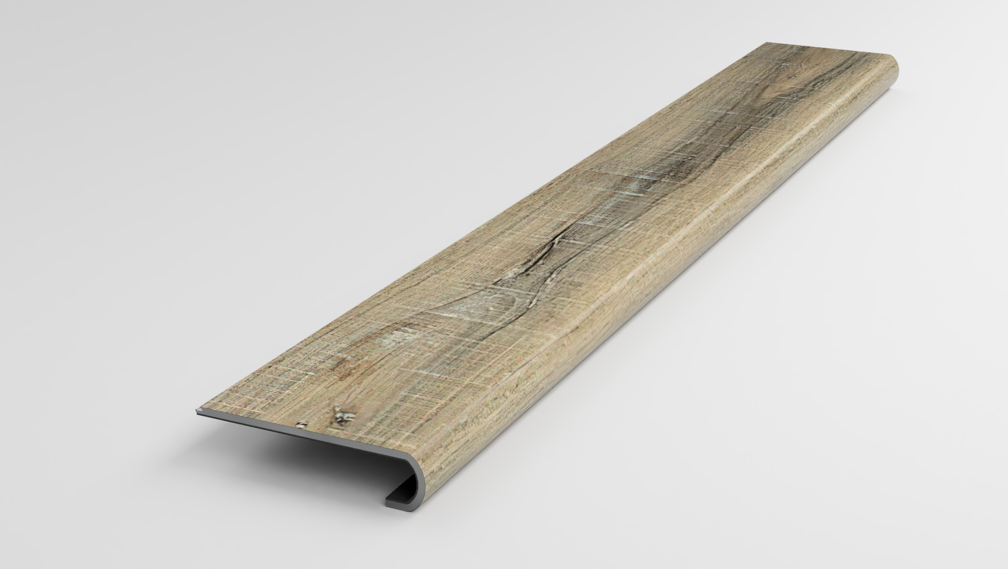 This variant is a Stair Nose made from a Mohawk Explorers Cove New Silhouette Luxury Vinyl Plank. It is designed to be fitted and glued to the unfinished Stair Tread Nose. An addition Mohawk Explorers Cove New Silhouette plank that you supply can be clicked in behind the nose to cover the remaining unfinished area.